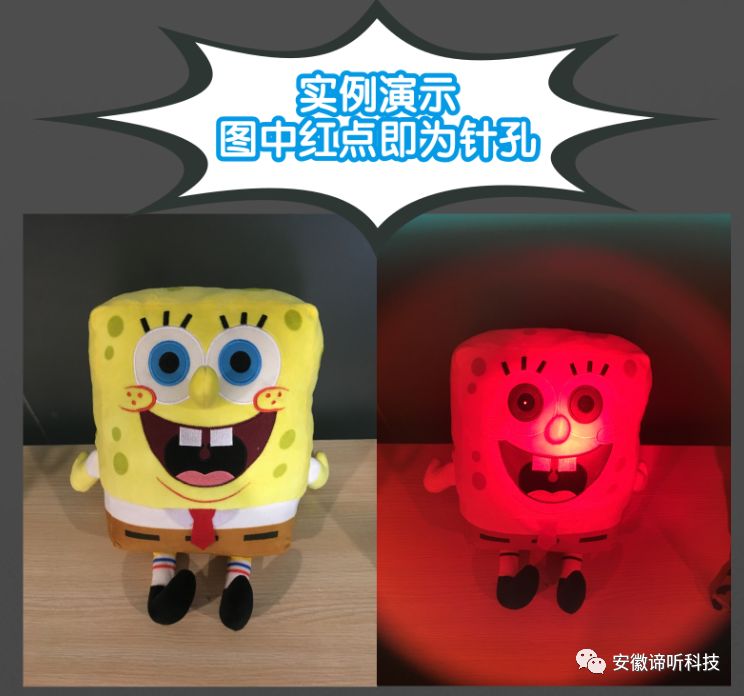 当摄像头未开启红外夜视功能时,基础款探测器还可以开启LED激光发射功能发出红光,当对准镜头时,镜头反射激光发射器发出的红光,通过滤波片就能看到高亮的点位,从而辨别出镜头。