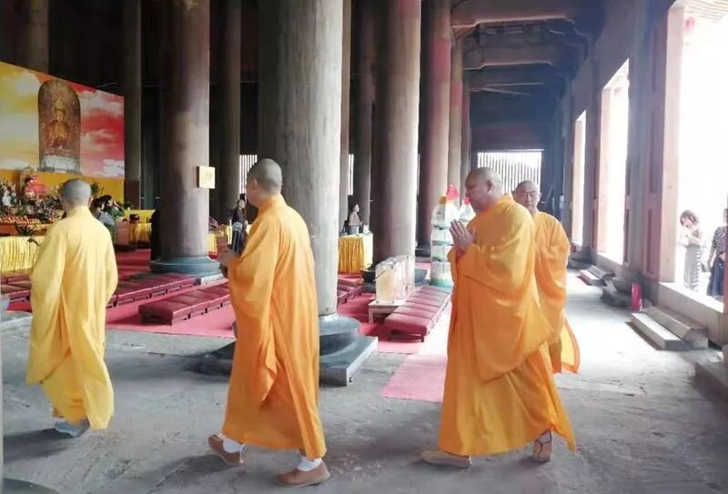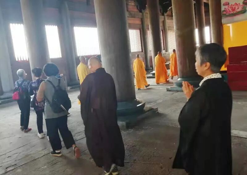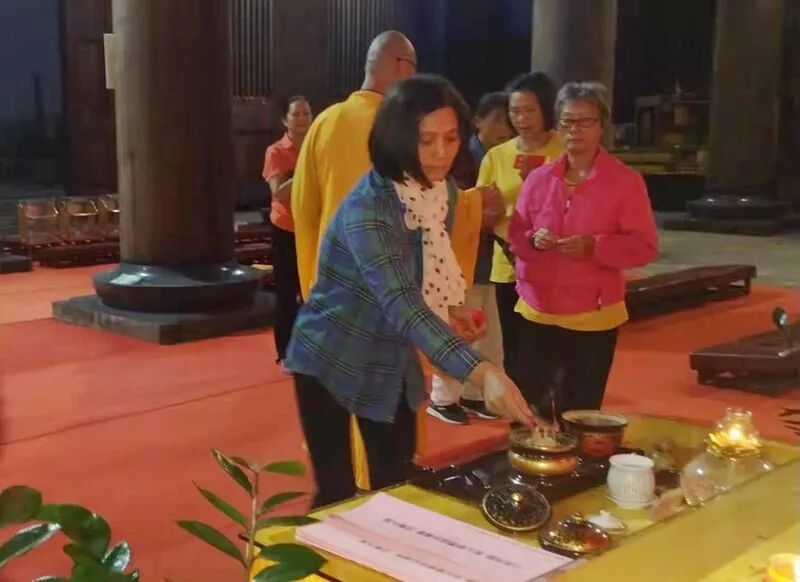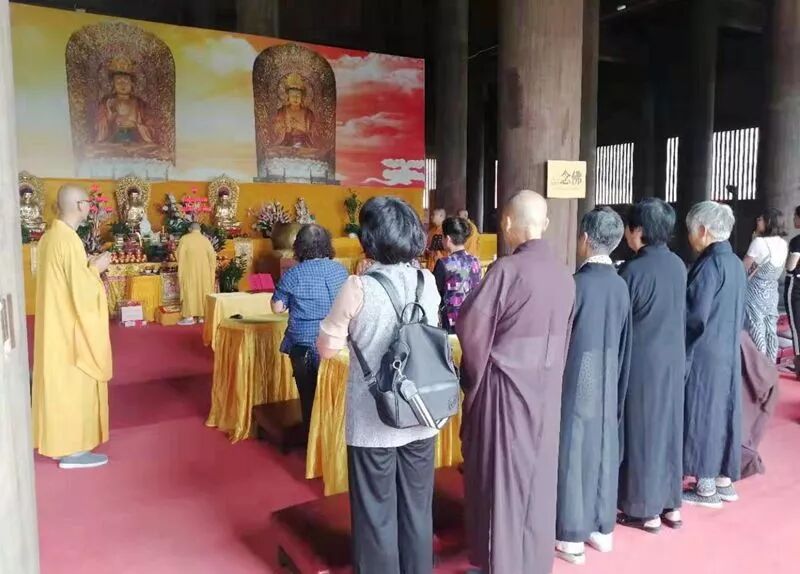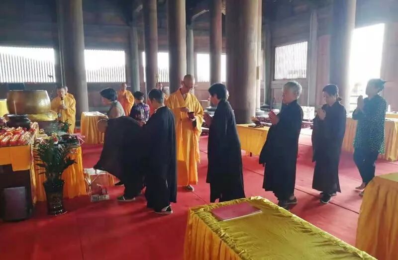 十点十五分,上佛前大供。昌盛法师率领护法信众上香礼佛,至诚祈祷。祈愿世界和平,祖国昌盛;风调雨顺,民众安乐;消灾延寿,破诸疾苦。