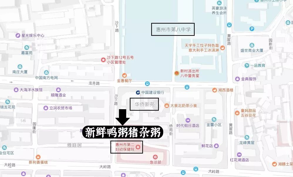 手机导航 | 高德地图搜索“新鲜鸭粥猪杂汤”即可到达。