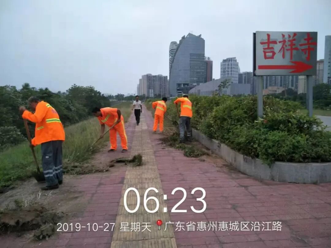 1、参加“大美惠州?感恩有你”广东省第26届环卫工人节表彰大会,我司荣获2019年度环境卫生工作先进单位,我司员工扈要华等人荣获2019年度环境卫生工作先进个人;2、我司环卫工人自编自导自演,由分类垃圾桶“改造”而成的特殊乐器带来歌曲《一起来分类,惠州更美丽》,让大家对垃圾分类有更深的认识,推动更多的人加入到垃圾分类大军中,共同营造一个更美丽的惠州;3、常态化保洁各大街小巷,机动化保洁清理沿江路等路段杂草,对小金片各路段杂草喷洒除草剂,冲洗各路段垃圾桶点;4、白天、夜间进行道路清扫、洒水,高压冲洗汤泉路段快车道、金石四路、金石二路、惠民大道、柏岗路等路段;加强喷雾降尘作业;垃圾车正常作业清运垃圾;
