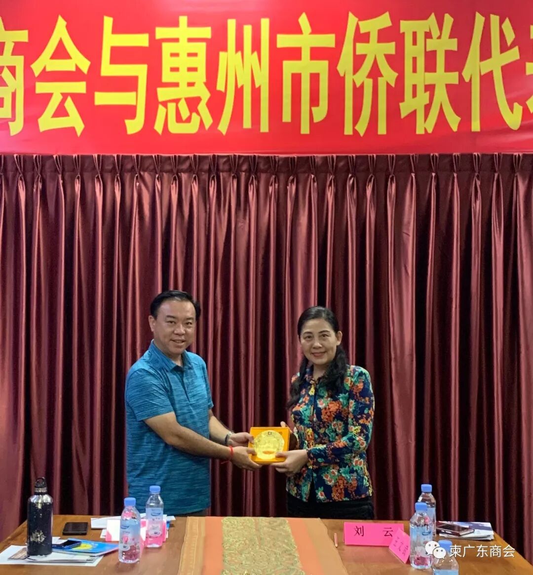 惠州市归国华侨联合会主席刘云对广东省驻柬埔寨经贸代表处、柬埔寨粤商会的热情接待表示衷心的感谢,并向商会代表介绍了惠州市侨联局的基本情况和访柬目的。刘主席表示, 为贯彻和落实“一带一路”的战略方针,为了切实帮助民企走出去,加强广东及惠州对柬埔寨进一步交流与合作, 共享粤柬两地商机,促进两地企业更好发展。此次访柬, 不仅了解侨情,也为民企拓展商机。