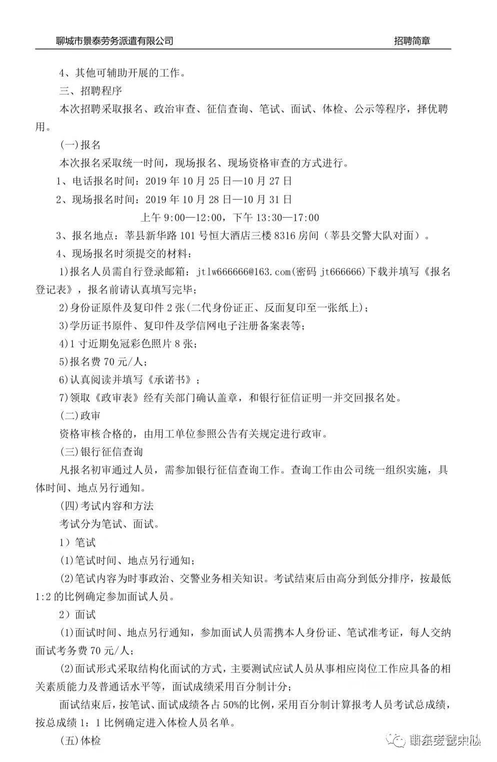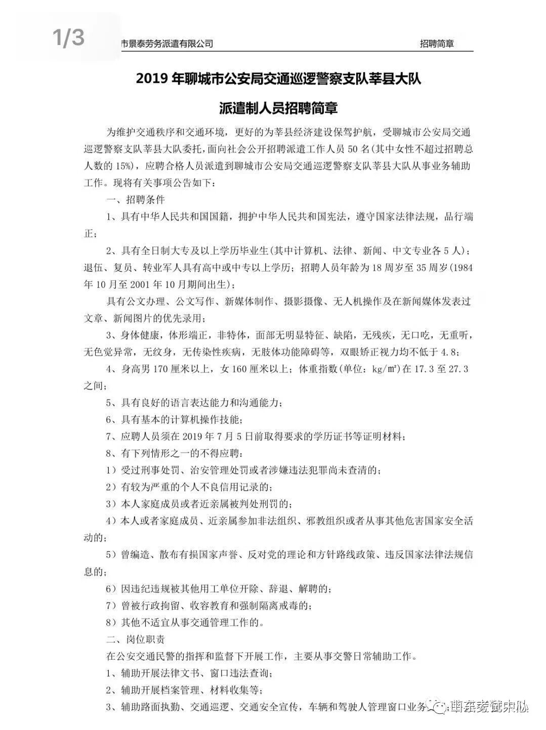 聊城市莘县交警大队招聘简章(50人)
