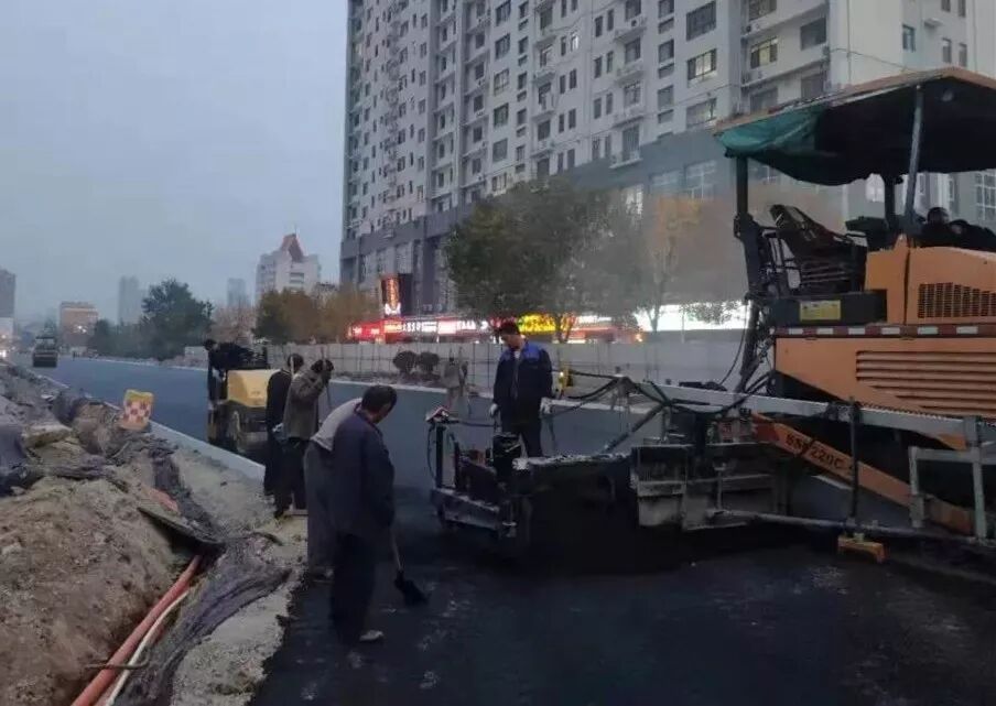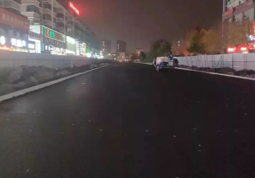 前期施工时因地下燃气、自来水、热力、国防光缆等管线复杂,埋深较浅,需对管线进行逐一保护,导致施工难度增大,施工进度相对滞后。后在各相关单位大力支持、积极配合下,克服种种困难,加班加点进行施工,于10月25日顺利完成了花园路-聊大西路段及龙山北街段主道路施工工作。