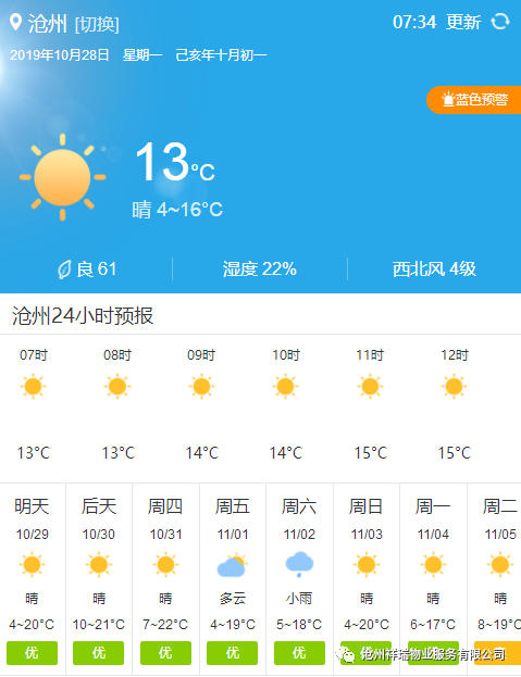 沧州天气预报