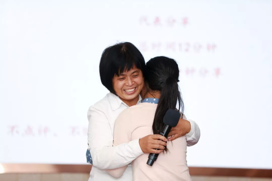 邱敬文,在育红小学上五年级,此次和妈妈一起前来听课,在分享环节,第一个上台分享,然后领读人李金玲安排了母女对话,邱敬文的母亲说:“文文,以前妈妈很多事情说到没有做到,以后一定做到!”邱敬文说:“妈妈,我不怪你!”
