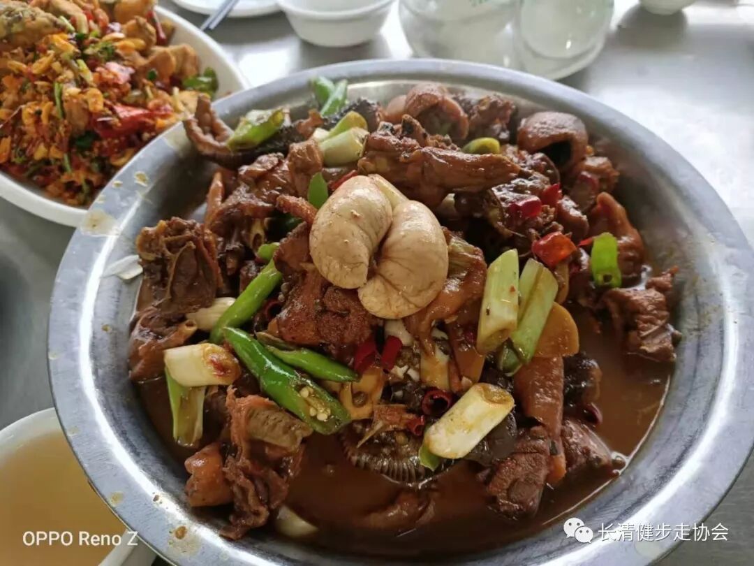 还不到中午,一大盆热气腾腾的土鸡就上桌了。红烧的鸡肉酱紫色,配了嫩绿的青辣椒和芫荽,仿佛工艺品不忍下著。但这个念头仅仅存留了不到一秒钟,在哈喇子的怂恿下,还是让艺术品实现他崇高的价值吧。文火炖出来的土鸡,骨肉分离。鸡皮有些黏牙入口即化,粗壮的肌肉纤维在跟牙齿斗争了半个回合之后败下阵来,留下硬硬的口感和鸡肉特别的鲜香之后消失的无影无踪。微辣的口感总是让口腔在满存了食物大快朵颐时不感觉辣,而一旦停下来辣味让口腔有些受不了,于是马不停蹄去吃第二块。须臾之间盆子里只剩下些浓稠的汤水,而殿静兄好朋友讲解的临沂风土人情人生经历也随着咀嚼咽到记忆深处,留下一个临沂人朴实无华的样子。