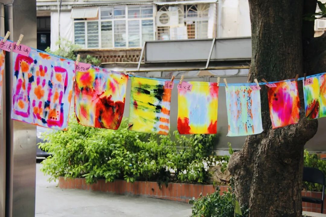 通过趣味扎染手工活动,可以有方法地训练儿少的手部精细动作、开发儿少的创造力、提升色彩鉴赏力,共创亲子美好时光。二十分钟后,孩子们成就感满满、愉悦自主把“独一无二的艺术品”整齐排列在晾架上,透着光线,恰似一群灵动的舞者。