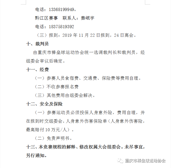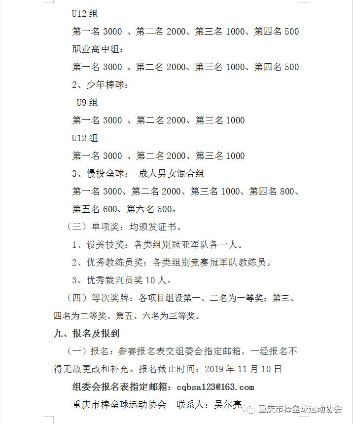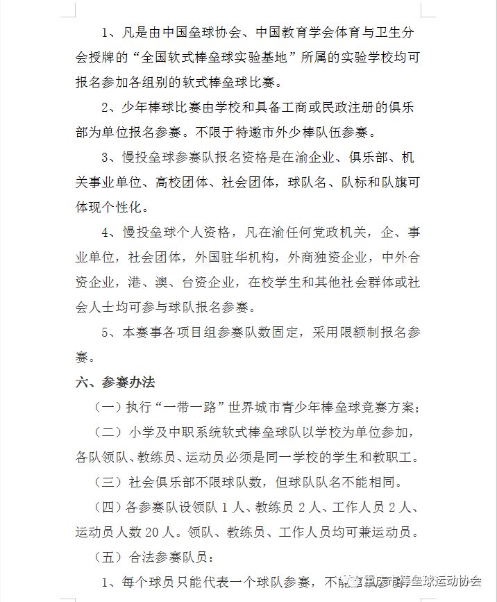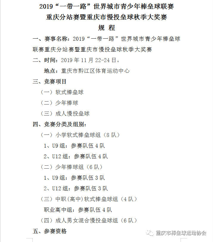 2019“一带一路”世界城市青少年棒垒球联赛 重庆分站赛暨重庆市慢投垒球秋季大奖赛规程