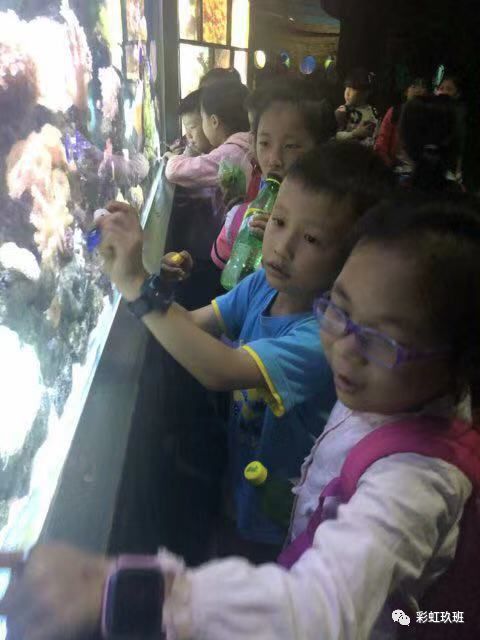 同学们被那些大小不同,形态各异的海洋生物和动物们吸引住了…… 海洋公园到处是我们没见过的珍贵的鱼,我们时而驻足,时而拍照。