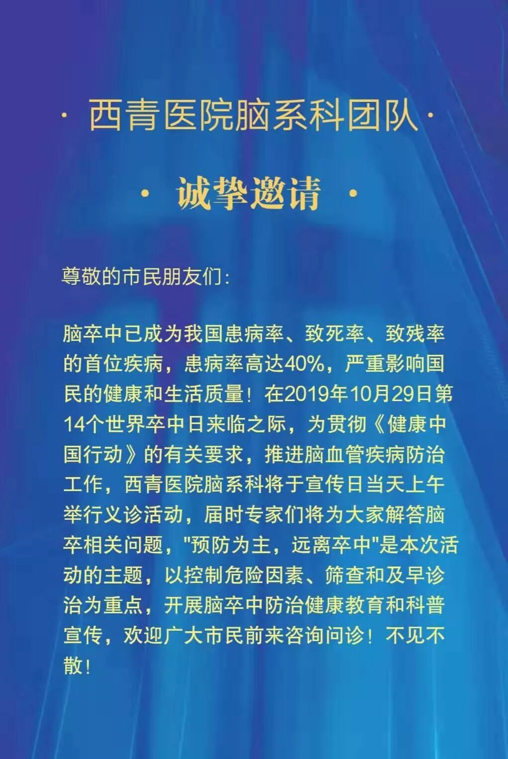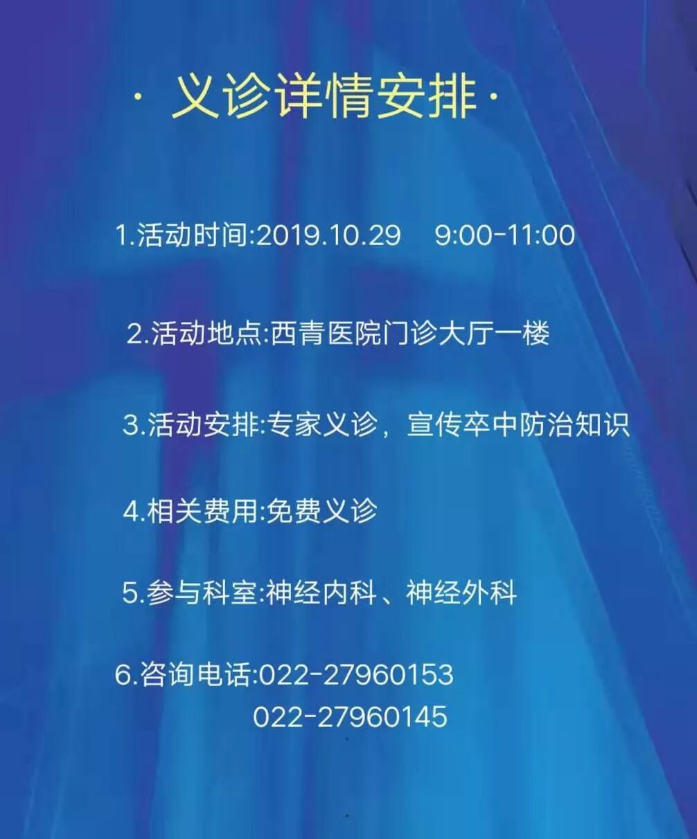 本周二!西青医院举办“世界脑卒中日”大型义诊活动!