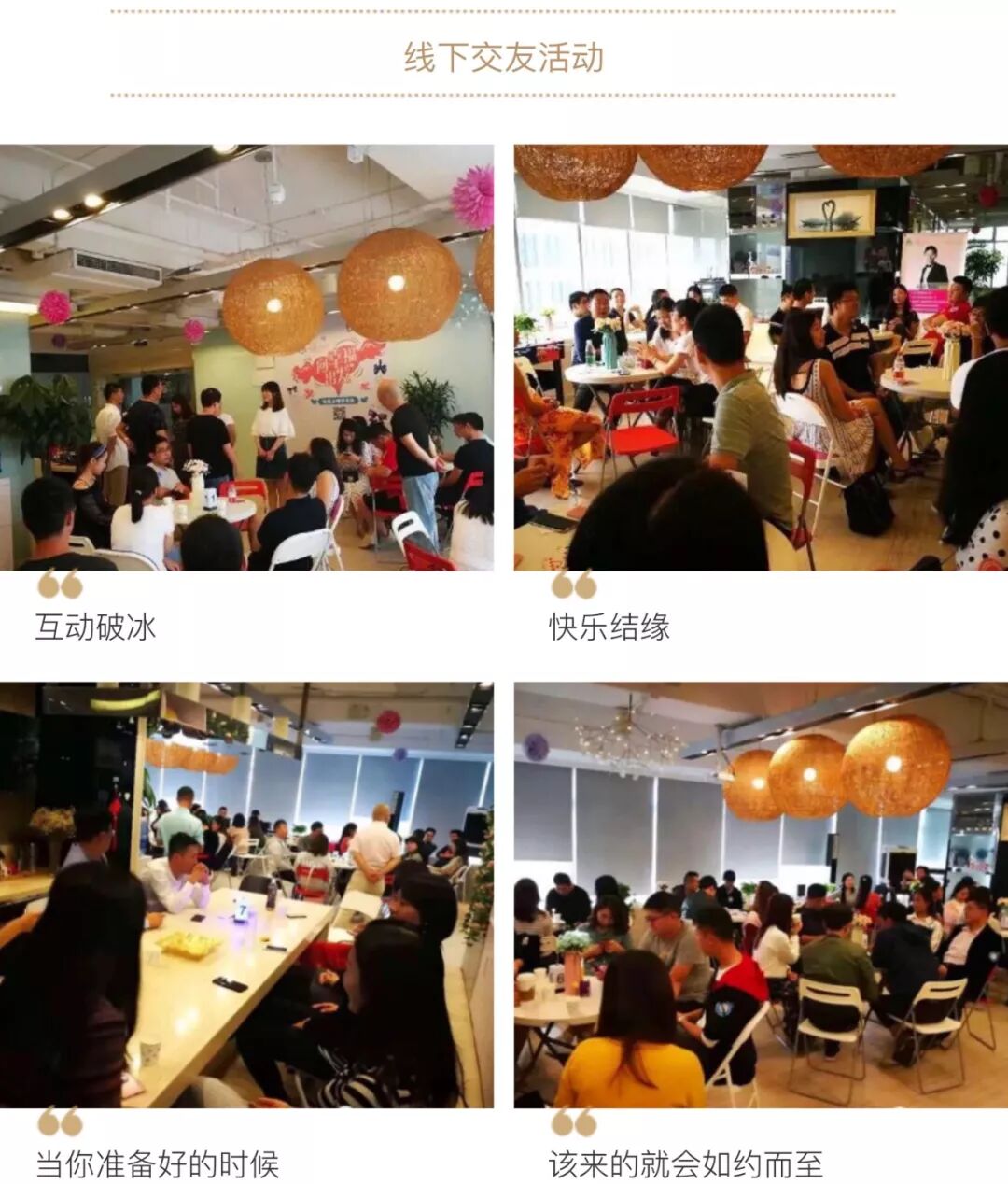 我们是上海专业的单身交友平台,定期组织各类精彩的单身交友活动:K歌,聚餐,轰趴,户外单身游等。加入我们,在这里一起寻找旅行的乐趣和甜蜜的爱情吧!