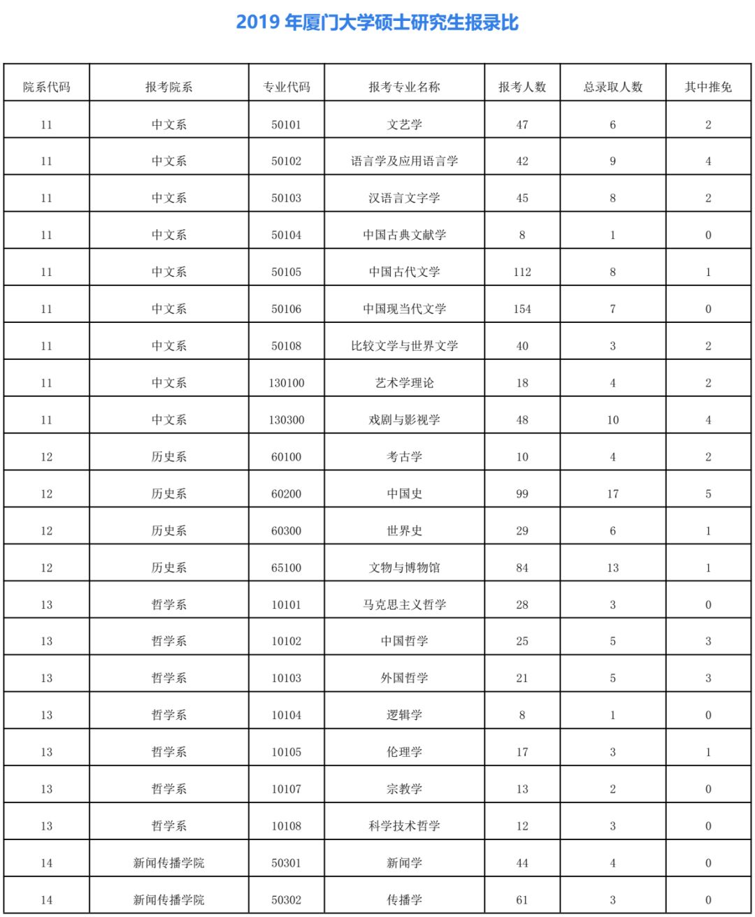 今天带来的就是【厦门大学】2019考研的各专业报录比信息,报考本院校的同学们快来围观.