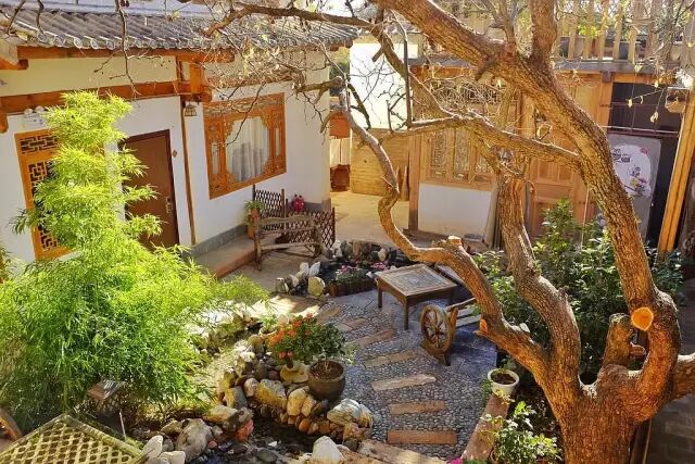 民宿保留当地白族传统建筑风格——夯土和卯榫结构的房子,冬暖夏凉。