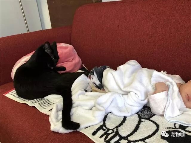 铲屎官妈妈也是感叹,“没有拜托它们,却主动轮流帮我照顾宝宝,真是帮了大忙”。