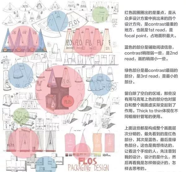 3rd read:设计生成的过程,比如形态的演变,或者是不同的设计方向。视觉感最弱,占纸面面积最小。