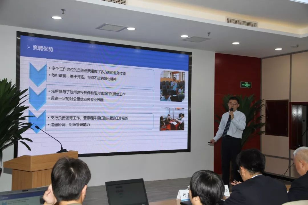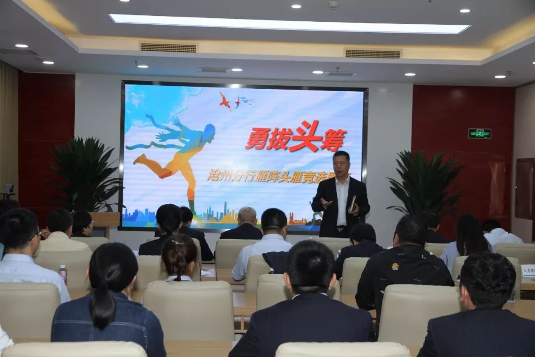 10月10日晚,沧州分行组织“雁阵领航”计划头雁竞选,12名来自本部和基层的青年骨干竞争四大雁阵的“领头雁”。本次对智融雁阵(授信业务)、扬帆雁阵(党团文字)、汇通雁阵(国际业务)、普惠雁阵(普惠金融)四个雁阵头雁进行了公开竞选。