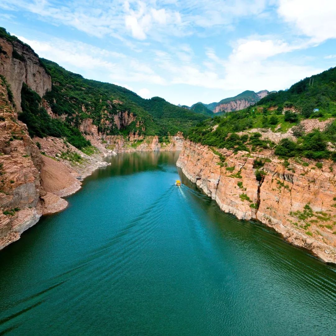 位于邯郸武安市西北部山区的口上村北,亦称口上水库,其有“太行三峡”之称。湖面呈倒“人”字型,分东西两支,总长十余里。两岸险峰对峙,怪石嶙峋,摇舟穿峡,仰望蓝天一线,俯视碧水一带,大有“峰与天关接,舟从地窟行”之感。