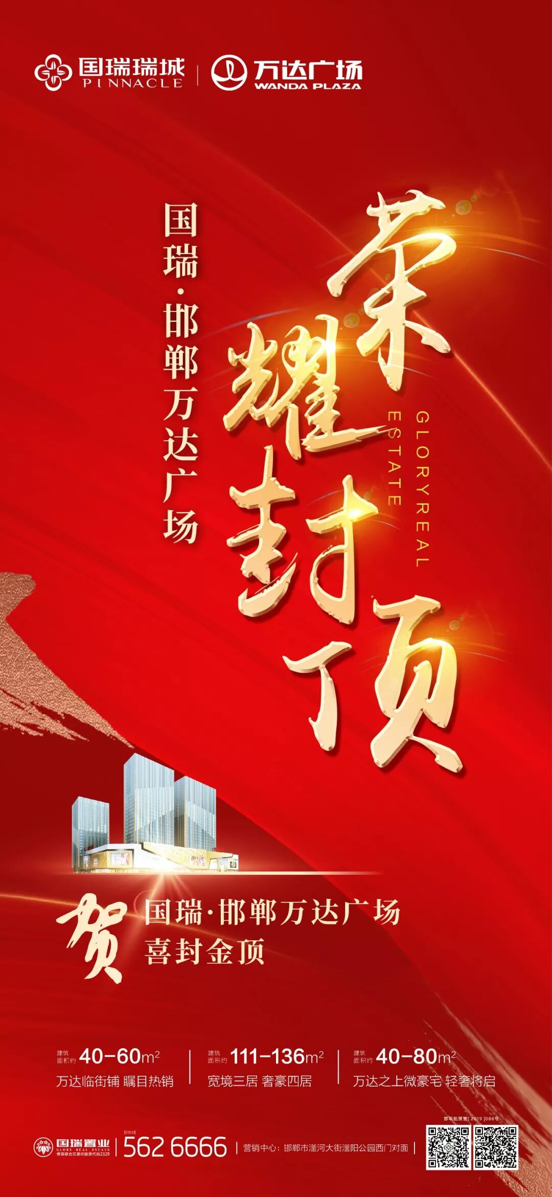 国瑞·邯郸万达广场作为邯郸市重点项目,政府一直对其给予厚望,期盼国瑞·邯郸万达广场早日落成,为邯郸置业者和市民带来一座集多种功能于一体的大型城市综合体,快速提升市场经济持续发展,把更好的服务、更好的产品带给邯郸人民。随着工程进度的顺利推进,国瑞·邯郸万达广场于10月26日荣耀封顶。历经时光的淬炼,国瑞·邯郸万达广场即将初露锋芒,以建筑的力量转化为城市动能,为邯郸人民打造潮流新坐标,引领邯郸迈向繁华新台阶。