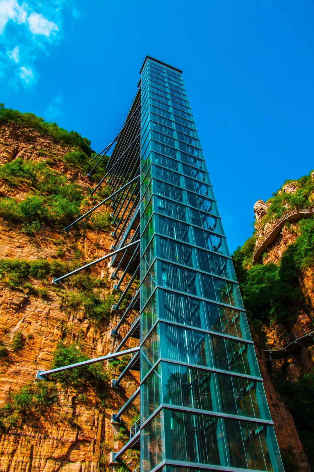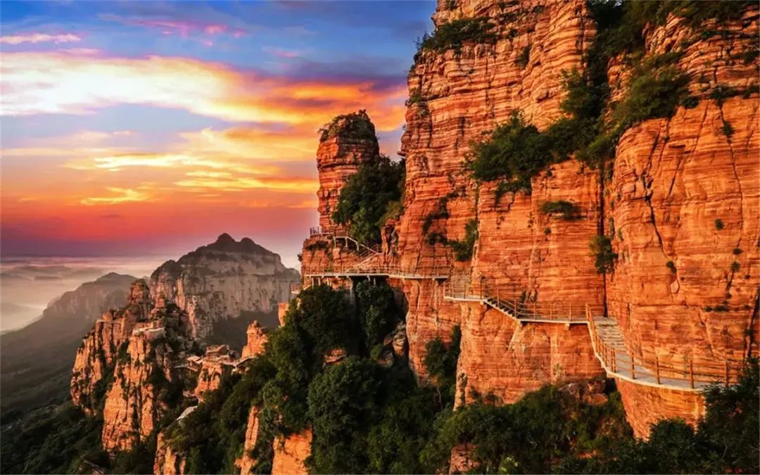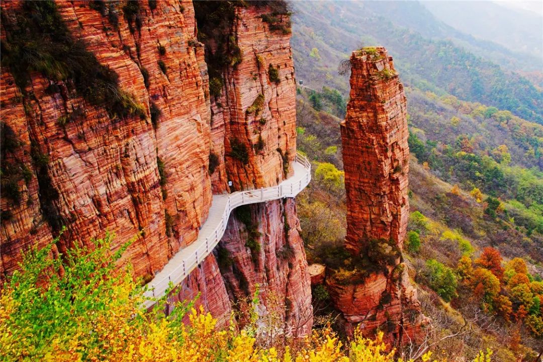 漫步在盘旋于千米之上、悬挂于峭壁之间的云端栈道,颇有一番别样的风味,放眼望去,一片醉人秋色,让你洗净无尽的凡尘铅华,忘记时空去沉醉。无论多沉重的愁苦和杂念,都揉进东太行秋天的斑斓与零落里,刚刚好。