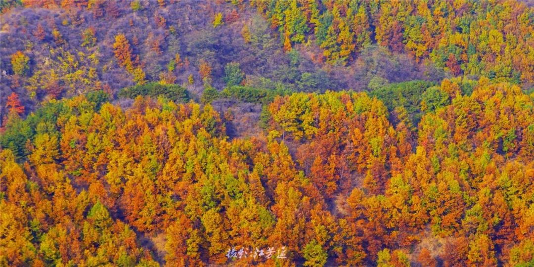 轻抚过东太行的崖壁,鲜红的岩石,优美的纹理,与金黄的秋景相映,充满了诗情画意。谁说秋日寂寥?东太行的秋就带着火红的热情!