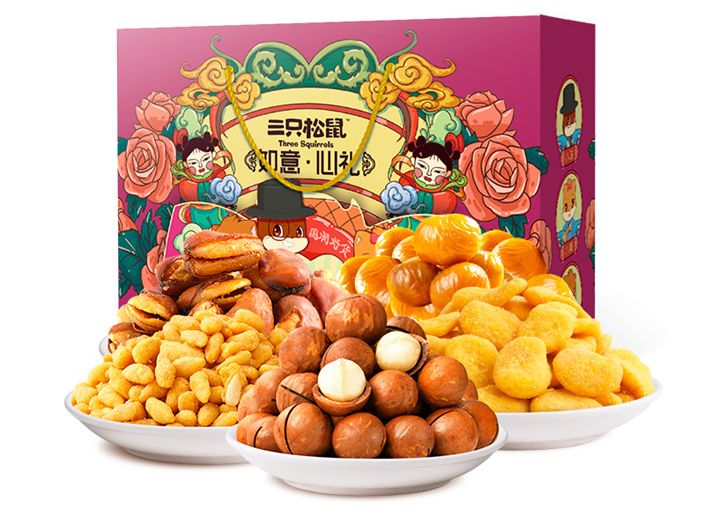 礼 包 内 12 袋 装夏威夷果160g*2芒果干116g*2手撕猪肉脯50g*2纸皮核桃210g*1甜蜜蜜瓜子120g*1蒜香豌豆205g*1紫薯花生205g*1蟹黄瓜子仁218g*1牛肉味兰花豆205g*1