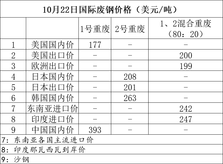 先看一眼上周国外废钢价格以及周边国家的进口价,价格分外美丽,心里美滋滋: