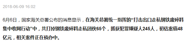 经过小编打听,由于今年7月1日起,废钢属于限制进口类固废,进口废钢则必须取得环保部核准的进口批文,主要还是卡在了进口批文上!
