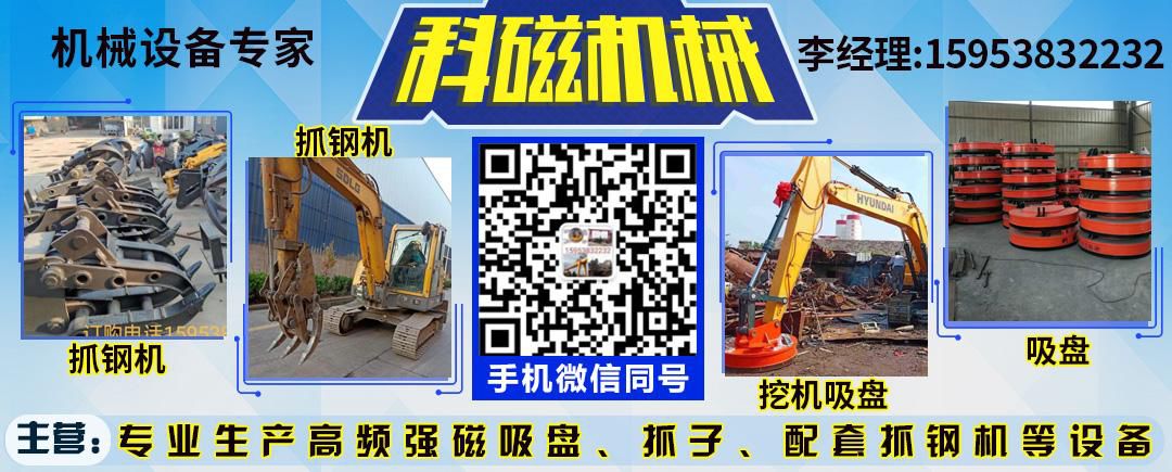 本公司专业生产各种强磁吸盘,改装挖机叉车吸盘,出售二手挖掘机,各种液压抓钢机,机械抓钢机,拆包机、半封全封抓钢机,二手挖掘机改装,行车电动抓斗,改装油电两用挖掘机,诚信第一,质量为本,一次合作,终身朋友,财富热线:张18662377119微信同号
