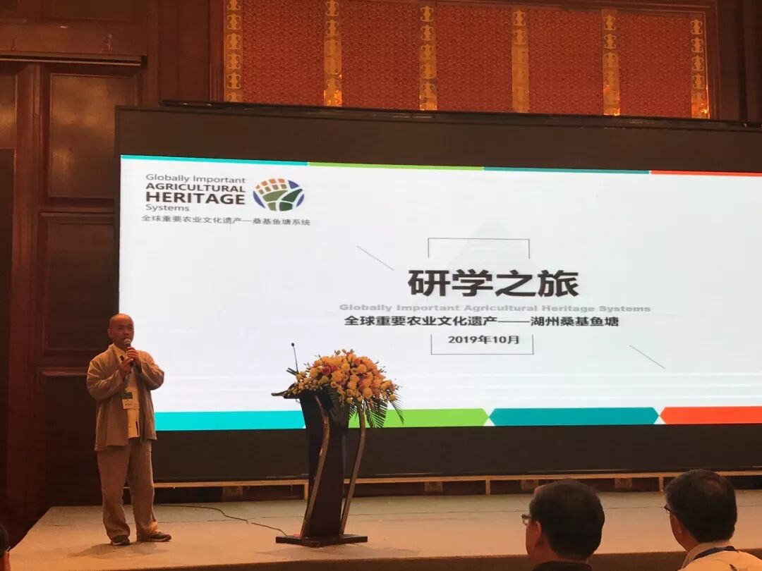 湖州南太湖农业文化遗产保护与发展研究中心秘书长楼黎静、湖州市经济作物技术推广站站长钱文春、湖州市桑基鱼塘产业协会会长徐敏利等参加本次会议,湖州市鱼桑文化研学院院长王似锋就桑基鱼塘系统的研学和发展现状作汇报交流。