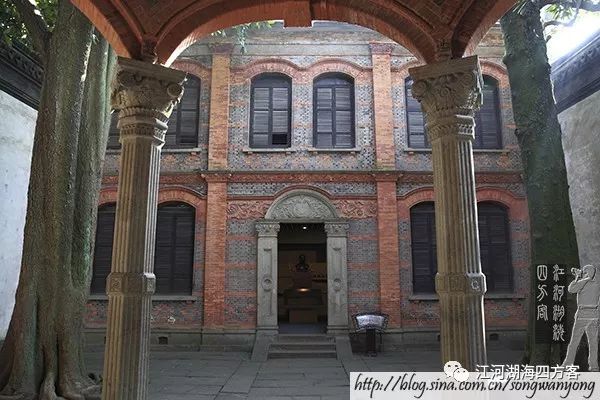 刘氏梯号建成于光绪三十四年,整座建筑由南、中、北三部分组成。中部建筑以江南传统风格的厅堂楼厢为主体;而南北部建筑则融入了西欧罗马式建筑。两幢西式楼房用红砖砌造,故俗称之为“红房子”。