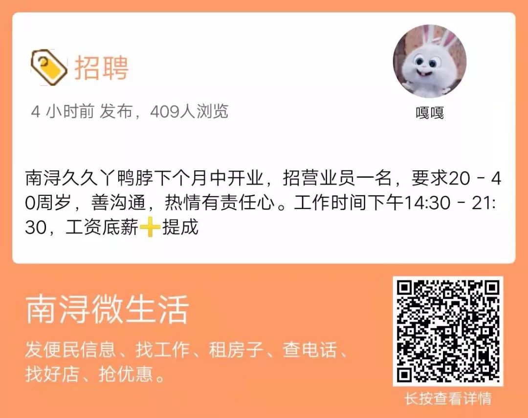 免责声明:以上信息是由南浔论坛、南浔同城分类信息用户自行发布,所有内容均由发布者对信息的真实性负责。本公众号平台仅提供信息发布、展示,不对用户信息内容的真实性负责;所有信息仅供参考,请用户谨慎辨别!切勿上当受骗!警惕所有的金钱往来交易!